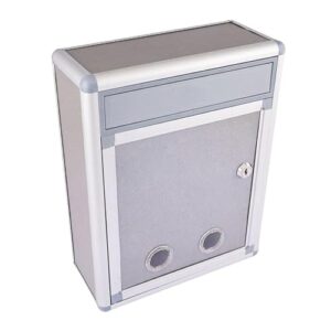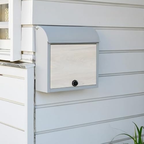 モダンなデザインの壁掛け郵便ポスト。A4対応で鍵付き、宅配ボックス機能もあり防犯性抜群。グレー/アッシュの色合いは玄関や屋外にぴったり。メール、雑誌、封筒が収納可能。