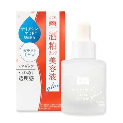ワフードメイドの酒粕先行美容液グローは、ナイアシンアミドやアルブチンを配合し、くすみを改善し透明感を与えます。ガラクトミセスやセラミド、米発酵液が肌を整え、30mLの容量でスキンケアに最適です。