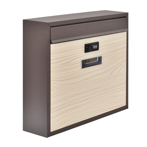 Fkstyle【壁掛けポスト】宅配ボックス ダイヤルロック式 木目調デザイン おしゃれ A4サイズ対応 大容量 縦型/横型選択可能! 奥行9cmスリム設計 防錆加工 簡単取付 玄関用 セキュリティ郵便受け メールボックス 戸建(ブラウン/ナチュラル)の製品情報