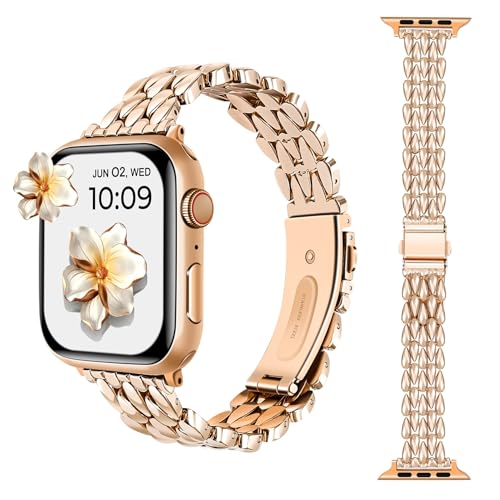Apple Watch用ステンレスバンド・ローズゴールドは、耐久性に優れた素材で作られ、高級感あるデザイン。調整可能なバックル付きで、多様なサイズに対応。快適な装着感を提供します。