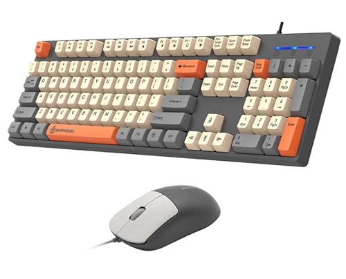 OUSEITECH キーボード・マウスセットは、104キーのUSB有線フルキーボードです。Windows Vista、XP、10、8、7に対応し、オレンジ色のデザインが特徴です。