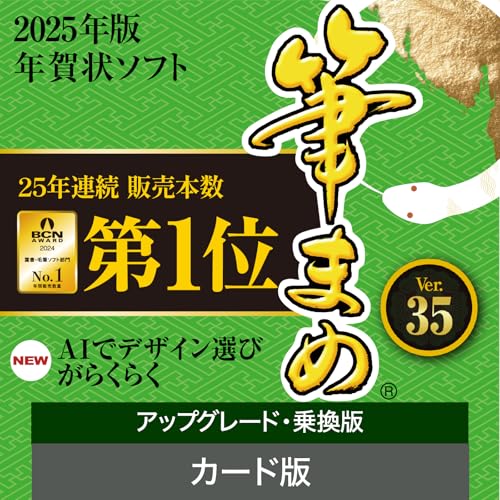 【2025年版】筆まめ Ver.35 アップグレード・乗換版は、年賀状やハガキ作成、住所録、宛名印刷に対応したWindows用ソフトです。旧版からのアップグレードも可能で、簡単操作で多彩なデザインが楽しめます。