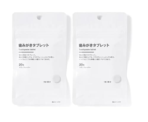 無印良品の歯みがきタブレット(レモン味)は、20粒入り×2袋(10g)で、便利に持ち運べるオーラルケア商品です。口臭ケアにも効果的で、自然な風味が楽しめます。