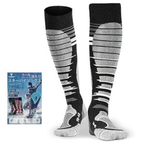 [TOUKAWA] スキー 靴下 メリノウール スキーソックス スノーボード 抗菌 防臭 着圧 防寒靴下 冬用 冷え性対策 アウトドアソックス 吸汗 速乾 パイル編み 通気性 水洗い可 メンズ ブラック&ホワイト Lサイズ 1足