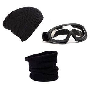 [World Bridge] スキーセット 防寒3点 ゴーグル ニット帽子スキー ネックウォーマー (黒, 透明)