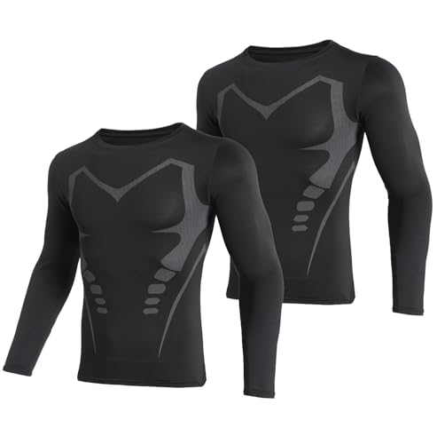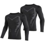 XiXiVのコンプレッショントップスは、メンズ用の長袖2枚組で、UVカット機能付き。吸汗速乾で軽量、パワーストレッチ素材を使用したアンダーシャツとして最適なウェアです。