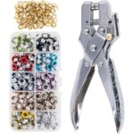 ハトメパンチはオープン工業製の穴あけ工具で、衣服や皮革制作に最適です。使いやすく、炭素鋼製で耐久性があり、400pcsのリベットが含まれています。穴径は4.5mmです。