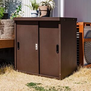 / Drvruro 屋外ゴミ収納庫 カラス対策 野良猫対策屋外用収納 大容量 高強度ネット材質 軽量 折り畳み ランドリー収納 洗濯かご 屋外収納ボックス 省スペース (ブラウン,トランペット 34x40cm)