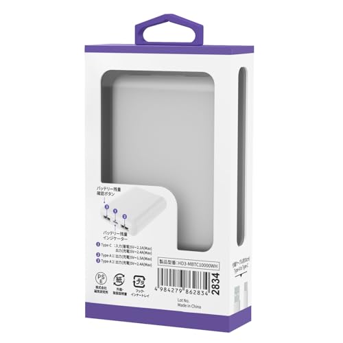 HIDISC コンパクトモバイルバッテリー 10000mAh 3台同時充電 空調服対応 HD3-MBTC10000WHの製品情報