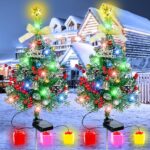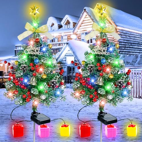 ソーラークリスマスツリーデコレーション、60個LED、6個オーナメント、ギフトボックス6個、8モード、34インチ。ポーチや庭に最適!