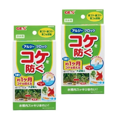 GEX コケを防ぐ アルジーブロック×2個セットは、淡水水槽用のコケ抑制剤です。水質を安定させる成分が含まれ、藻類の発生を防ぎ、綺麗な水質を維持します。安心して使用できる商品です。