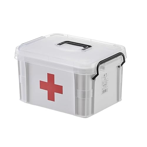 Akasoodaの救急箱はおしゃれで大容量の2層設計。屋外や家庭用に最適な収納ケース。かわいいデザインで、薬や小物を整理。ハンドル付きで持ち運びも便利。ホワイトのMサイズ。