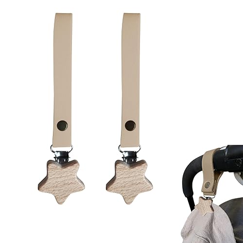 aninakoのブランケットクリップは、PUレザー製で落下防止に最適なベビーカー用アクセサリーです。木製のデザインで、アンズ色が2本セットになっています。