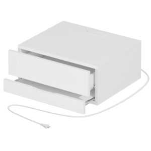山崎実業のウォールモバイル充電&収納ラックは、石こうボード壁に対応し、スマホスタンドとしても使えます。サイズはW10×D7.8×H16.8cmで、石こうボードピンセットと木ネジが付属。