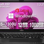 極薄ノートPC LIFEBOOK U937/U938。FHD、Core i5-7300U、RAM 12GB、SSD 1TB、13.3型ディスプレイ、内蔵カメラ、800gの軽量設計。Office 2019、Win 11対応。