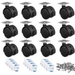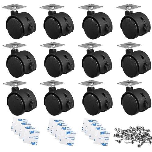 強力両面テープ&ネジ付きの貼るだけキャスター。ブレーキ付きで、木材やタイルなど様々な床に適用可能。交換タイヤキットとしてDIY家具に最適。ホワイト色、12個入り。