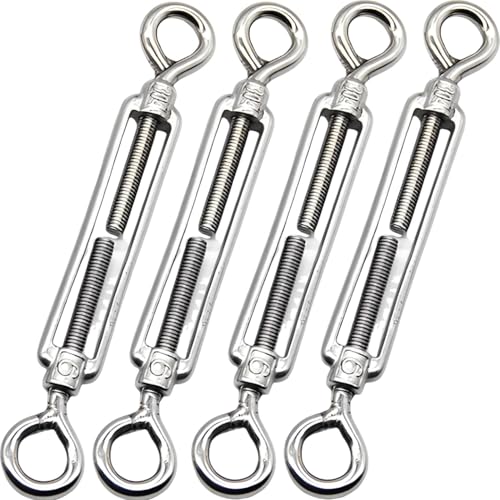 fogmanのターンバックルは、ステンレス製で耐久性があり、ワイヤーフックが付属した固定金具です。4本セットで、M5 2頭ループ仕様のため、多用途に使用可能です。