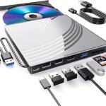 ノートパソコン用外付けCD/DVDドライブ、ウルトラスリムCDバーナーUSB 3.0ハブ USBポート4つ、TF/SDカードスロット2つ、Type-Cポート1つ、ノートパソコン用DVDプレーヤー Mac OS/Windows/Linux対応 (シルバー)の高価買取