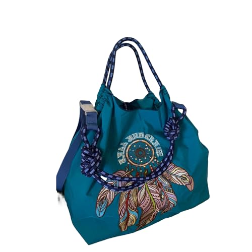 [Richhapy] ballandchain ボールアンドチェーン エコバッグ 【ショルダーストラップ1本無料】お洒落な エコバッグ 大容量 トートバッグ コンパクト リュック 繰り返し使用 買い物袋 軽量 収納 刺繍ショッピングバッ (M,ブルー/フェザー)の高価買取