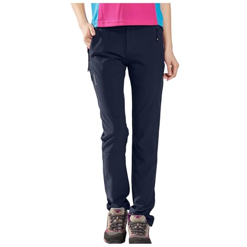 レディース用トレッキングパンツ。夏向け薄手で大きいサイズのロングパンツ。ゆったりしたデザイン、速乾性、UVカット機能あり。アウトドア、登山、ゴルフにも最適。ネイビー/XLサイズ。