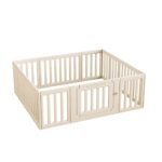 折りたたみ式のベビーサークルで、150*180サイズ。二重保護機能付きの安全柵で、簡単に設置可能。脱走防止と自由自在な形状変更ができ、玄関用にも最適。おしゃれなデザインで、ペットゲートとしても利用可。