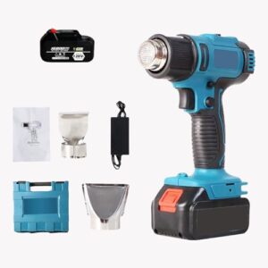 マキタ18Vバッテリー対応のコードレスヒートガン。350W、150°Cから1500°Cの温度調整が可能。LCDデジタルディスプレイで使いやすく、シュリンクチューブやPVCラップに最適。