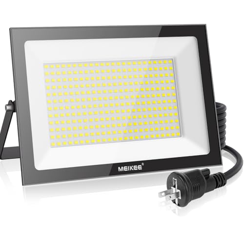MEIKEE 200W LED投光器は、20000LM・6500Kの超薄型でIP66防水。屋内外で使用可能、作業灯や看板灯、倉庫や駐車場に最適。高輝度でPSE認証済。
