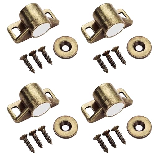 WHECHEの強力マグネットキャッチは亜鉛合金製で小型。ドア止め金具としてクローゼットや食器棚に最適。ネジ付きで簡単取り付け。ブロンズ色、4個入りで、閉鎖機能を強化します。