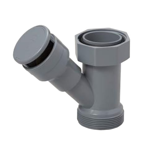 未来工業の排水用通気弁「通気スイスイminiワントラップ用」は、キッチンや流し用に最適。グレーのデザインで、効果的に排水の通気を促進し、悪臭や詰まりを防ぎます。