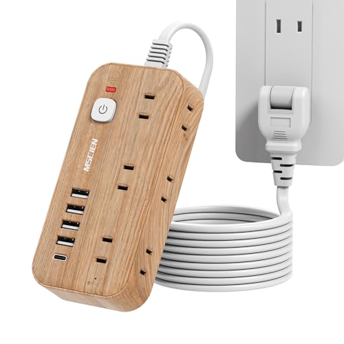 エムサイン Mscien 延長コード3mは、6個のAC口、4個のUSB-A、1個のUSB-Cを搭載。スイッチ付きで雷ガード機能付き。コンパクトでオシャレな木目デザイン、壁掛けや卓上に適しています。