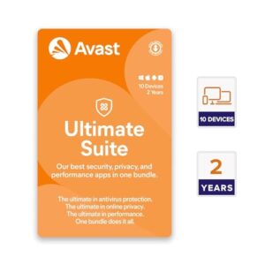 Avast Ultimate Suite マルチデバイス (PC、Mac、Android、iOS) (10デバイス | 2年間) (プレミアムトータルセキュリティスイート)(24時間以内のメール配信 – CDなし)