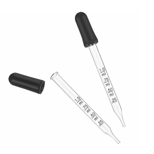 目盛り付きスポイト1mlが2本入り。クリアなガラス製で、液体移送や計測に最適。化粧品や香水、精油の小分けや自由研究にも。イージードーズ用のストレートチップで使いやすい。