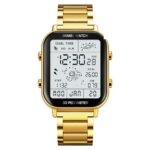 CARLIEN メンズ デジタル スポーツ腕時計は、多機能でLEDディスプレイ、ストップウォッチ、歩数計、カロリー計算を搭載。防水仕様で、カジュアルなゴールドデザイン。宇宙テーマで読みやすく、クォーツ式。