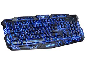 7色の発光メタルゲーミングキーボードとマウスセット。104キー、プログラム可能なRGB、エルゴノミクス設計、ノンスリップフットレスト付き。