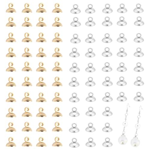 シルバー ヒートン 200個セット。ヒートンキャップ、ビーズキャップ、ピンなしで、イヤリングやペンダントに最適。丸ヒートンと接合金具を使用したハンドメイドや手芸用品に最適です。
