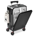 JOLISTARのスーツケースは、フロントオープン式でABS+PC製の耐衝撃設計。大容量かつ超軽量で静音性も高く、USBポートやカップホルダー、荷物フック付き。ダブルキャスターとストッパーで360度回転、スマホスタンドとTSAロックも完備。