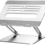 折りたたみ式のノートパソコンスタンド。無段階高さ・角度調整が可能で、姿勢改善や猫背対策に最適。滑り止めゴム付き、放熱対策もあり。15.6インチまで対応し、在宅仕事やZOOM会議におすすめ。