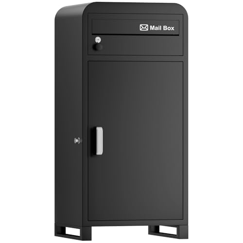VARNIC宅配ボックスは組み立て不要で大容量、屋外使用に最適。防水・防錆仕様、据え置きベースとマグネットシート付きで、盗難防止の両開扉。個人宅向けで、郵便受けとしても利用可能(ブラック)。