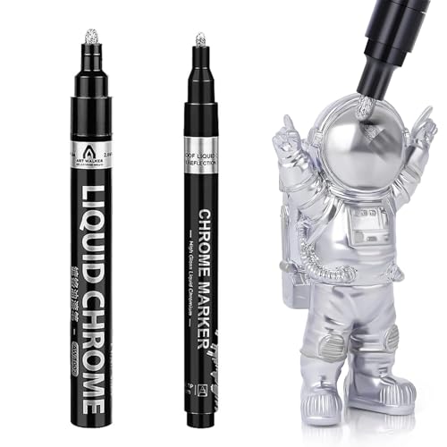 KALOLINNAの銀メッキ補修ペンは、2本セットで高光沢の液体クロムペイントマーカー。1mmと2mmのティップで、布・セラミック・ガラス・木材・金属に使用可能。防水で長持ちするメタリック仕上げ。