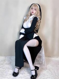 [AOTYP] メイド服 ロリータ ワンピース コスプレ ハロウィン 仮装 可愛い レディース 半袖 胸空き 蝶結ぶ パーティー イベント 演出服 ブラックXL