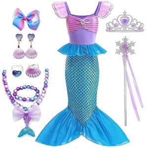 [KOCEKID] アリエル風 ドレス 子供 豪華セット 人魚姫風 ドレス アリエル風 コスプレ 子供 ディズニー風 プリンセス ドレス マーメイド風 ワンピース ハロウイン コスプレ コスチューム 仮装 変身 キッズコスチューム ステージ衣装 誕生日 パーティー クリスマスプレゼント