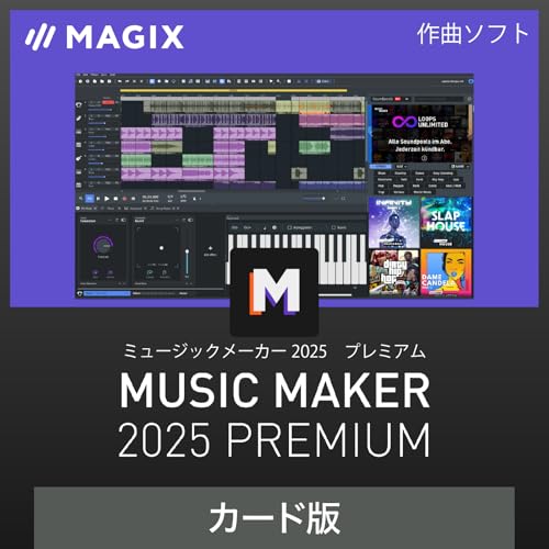 ソースネクストのMUSIC MAKER 2025 PREMIUMは、Windows対応の最新作曲ソフトです。直感的な操作で楽曲制作をサポートし、豊富なサウンドライブラリを提供します。初心者からプロまで幅広く活用できます。