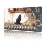和風デザインの大型ゲーミングマウスパッド(40cm X 75cm)。黒猫アニメと和柄が特徴。滑り止めゴム底で耐久性あり、光学式マウス対応。防水でオフィスやサイバーカフェに最適!