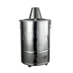 大型耐熱ペイントコート付きの家庭用無煙焼却炉。煙突無臭で、ドラム缶型のデザイン。ステンレス製で中型サイズの選択可能。落ち葉やゴミの焼却に最適。グリーンライフの製品で、環境に優しい。