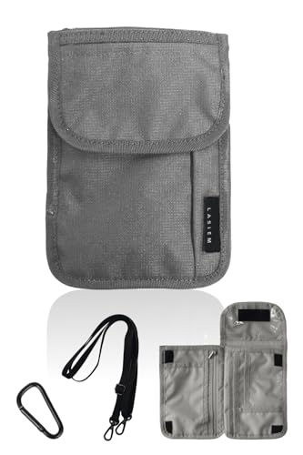 大容量17ポケットのパスポートケース。首下げ式で見開き構造、スキミング防止機能付き。軽量・コンパクトで撥水性あり。海外旅行に最適な灰色のデザイン。