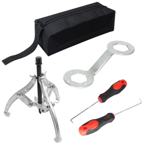 KEIMY洗濯機分解工具セットは、洗濯槽やパルセーターの分解、洗浄、修理をサポートするための専用ツールが揃っています。2WAYプーラー、38mmレンチ、リムーバー2個、専用工具袋付きで便利です。