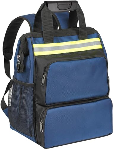 大容量の工具リュックは、電動工具やハードウェアを効率的に収納。ポケットが多く、反射ストリップ付きで安全性も高い。作業用やアウトドアに最適なアイテムです。