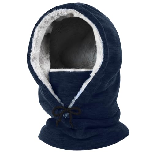 このフードウォーマーは、男性・女性共用の防寒・防風機能を備えたアイテムです。フェイスマスク付きで、冬のスポーツやアウトドア活動に最適。通勤や通学にも重宝します。カラーはネイビー。