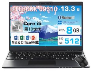 【整備済み品】【Webカメラ内蔵】 ノートパソコン LIFEBOOK U9310/第10世代 Core i5/ノートPC/13.3型 フルHD液晶/Windows11搭載/MS&Office 2019/メモリ8GB/SSD 512GB/WIFI/Type-C/HDMI/Bluetooth/マウス付属 (U9310/第10代Core i5/8GB/512GB)