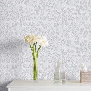 VEELIKE 壁紙シール リメイクシート 防水 耐熱 グレー地に薄色の草 44.5cm×3m 壁紙クロス 花柄 カッティングシート ウォールステッカー インテリア リフォーム 厚手 はがせる のり付き カットしやすい キッチン トイレ 玄関 子供部屋 会社 オフィス 寝室 テーブル 天板 食器棚 ふすま 襖 賃貸 おしゃれ 北欧 白
